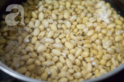 Ngâm đậu nành với nước từ 5-6h rồi vớt ra đem xay với 750ml nước.