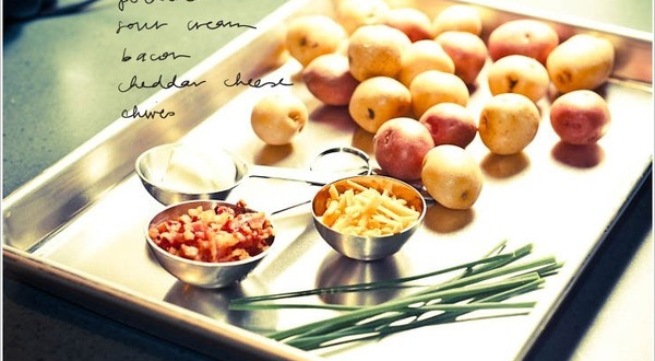 Với món khoai tây nướng này bạn dùng khoai tây bi để làm sẽ rất ngon nhé! Khoai nướng chín rồi cắt làm hai, sau đó cho ít kem chua, thịt hun khói thái hạt lựu và cuối cùng rải phô mai đều lên mặt khoai, cho vào lò nướng đến khi phô mai nóng chảy là xong!