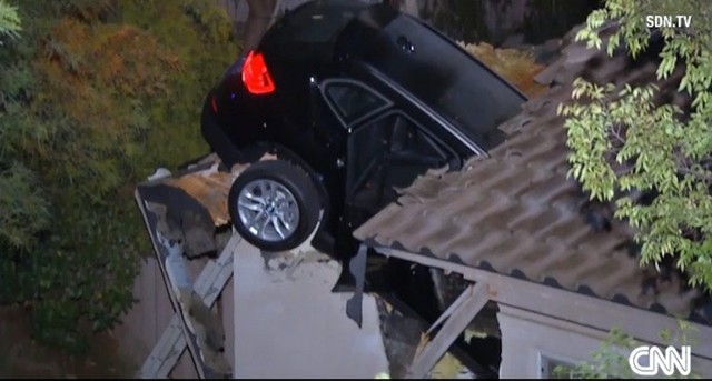 Sáng sớm hôm thứ tư, ngày 10/12, vừa qua, một cặp vợ chồng sống tại bang California, Mỹ đã rất sốc khi thấy một chiếc SUV hạng sang BMW X3 nằm xuyên qua nóc garage của họ. Khi đến hiện trường vụ tai nạn hy hữu, lực lượng cảnh sát địa phương còn bất ngờ hơn khi không tìm thấy người cầm lái chiếc BMW X3 màu đen.