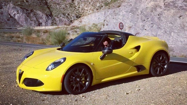 Được biết, hai chiếc Alfa Romeo 4C Spider màu vàng và đỏ với bộ la-zăng hợp kim đen đối lập bị các tay săn ảnh bắt gặp khi đang tham gia quá trình quay phim quảng cáo. So với xe concept, Alfa Romeo 4C Spider phiên bản sản xuất sở hữu thiết kế tổng thể không quá khác biệt. Tất nhiên, xe vẫn đi kèm một số điểm riêng biệt về mặt thiết kế. Có thể thấy rõ điều đó qua cách bố trí hệ thống xả phía sau, đèn pha cải tiến và hốc gió nhỏ nằm cạnh cửa bên trái xe. Mục đích của hốc gió mới là tăng cường quá trình làm mát hộp số của Alfa Romeo 4C Spider.
