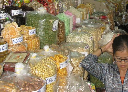 Trái cây sấy khô, sấy dẻo bán ở chợ Bình Tây.