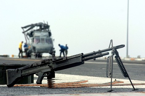 Súng máy hạng nhẹ M-60, cỡ nòng 7,62 mm, thường được gắn trên phương tiện bọc thép hoặc trực thăng và sử dụng để hỗ trợ bộ binh.