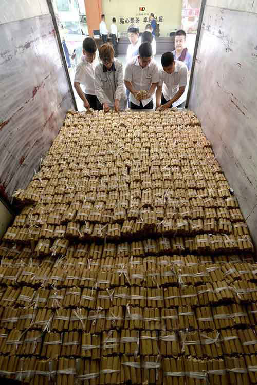 Số tiền xu 660.000 nhân dân tệ gói trong 1.320 bó, nặng 4 tấn, cao hơn 4m khi xếp chồng lên nhau.