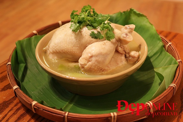 - Đặt gà vào xoong, cho nước và phần hành lá xắt khúc, đường phèn, ít muối vào hầm khoảng 50-60 phút, nêm nếm lại với hạt nêm, muối, đường rồi múc ra ăn, khi ăn cho ngò và tiêu rất ngon. Lưu ý: Nếu làm cách luộc nếp thì nhớ giữ phần nước luộc nếp, chế thêm nước lạnh để đủ 500ml rồi cho vào hầm.