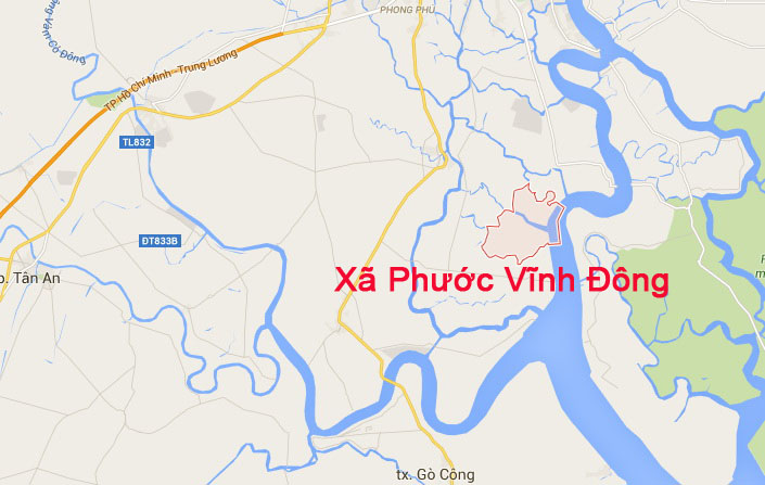 Vị trí xã Phước Vĩnh Đông, huyện Cần Giuộc, Long An trên bản đồ