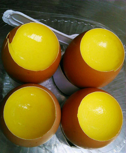 Trong năm qua, có một loại bánh mới đã xuất hiện, đó chính là flan quả trứng có màu vàng tươi và vị béo thơm ngon. Bánh flan được đặt khéo léo vào vỏ trứng, khi ăn bạn chỉ việc dùng muỗng múc một miếng nhỏ và cho vào miệng. Bánh thường có thêm chút cà phê để tăng thêm vị, nhưng bánh flan quả trứng chỉ ăn không đơn giản. Giá một quả trứng bánh flan là 8.000 đồng.