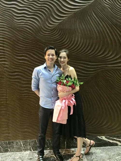 Thu Thảo diện trang phục đơn giản, cô trang điểm nhẹ nhàng, tô son đỏ vui vẻ tạo dáng bên cạnh người yêu điển trai. Nhiều nguồn tin thân cận cho biết, cả hai đang tính đến chuyện xa hơn và hôn nhân.