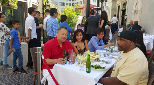 Giai nhân điện ảnh Việt một thời vui vẻ ngồi ăn trưa bên bạn bè trong một bữa tiệc.