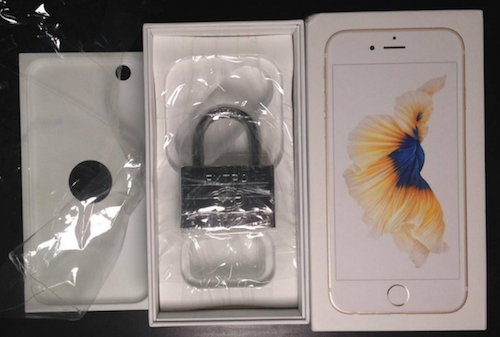 Thay vì iPhone thì người mua nhận được một chiếc ổ khoá. Ảnh: Phonearena
