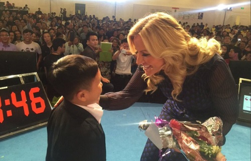 Trong buổi thuyết trình tại Việt Nam, triệu phú nội y Michelle Mone đã “bế nhầm” một người đàn ông 46 tuổi vì tưởng người đàn ông này là trẻ em 6 tuổi.