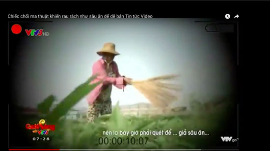 Trong phóng sự của VTV gần đây về việc người nông dân dùng chổi để quét lên rau tạo hiệu ứng sâu rau khiến dư luận vô cùng hoang mang. Tuy nhiên, đây chỉ là sản phẩm “dựng” của phóng viên VTV và đài này đã phải nhận mức phạt mới đây.