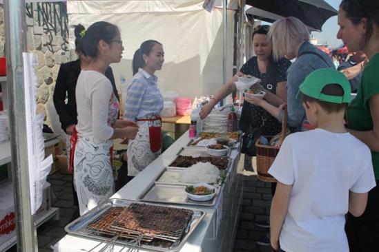 Hội chợ ẩm thực quy tụ 70 bếp nướng giới thiệu các món nướng đặc sắc của nhiều quốc gia trên thế giới như Việt Nam,Trung Quốc,Argentina, Mexico, Nhật Bản, Australia, Malaysia hay Croatia. Ảnh là du khách nước ngoài thưởng thức món nem Việt.