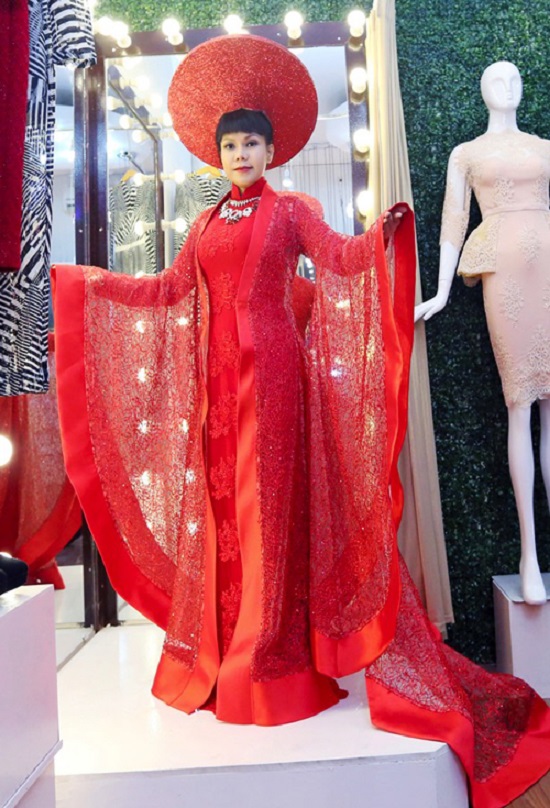 Áo dài truyền thống lấp lánh và rực rỡ. Nhưng có lẽ nó phù hợp cho các người đẹp dự thi hoa hậu hơn. Trang phục này quá cầu kỳ để mà trưng diện trong đêm gala.