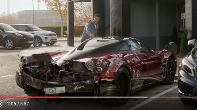 Được biết đoạn video này nhằm quảng cáo cho một hãng giày mà Cristiano Ronaldo đang làm đại diện, tất nhiên, vụ va chạm cùng phần đuôi xe bị hư hỏng nghiêm trọng của chiếc Pagani Huayra đã được chỉnh sửa bằng đồ họa trên máy tính, tuy nhiên, đoạn video cũng tạo ấn tượng mạnh cho người xem.