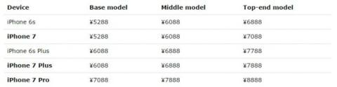 Theo đồn đoán, iPhone 7 Pro có thể có giá cả lên tới 8888 nhân dân tệ (tương đương với 30,1 triệu đồng). Trong khi đó, iPhone 7 Plus có giá là 7888 nhân dân tệ (tương đương 26,75 triệu đồng), còn iPhone 7 là 7088 nhân dân tệ (tương đương 24 triệu đồng). Thông tin này được rò rỉ bởi chuỗi cung ứng linh kiện iPhone của Apple.