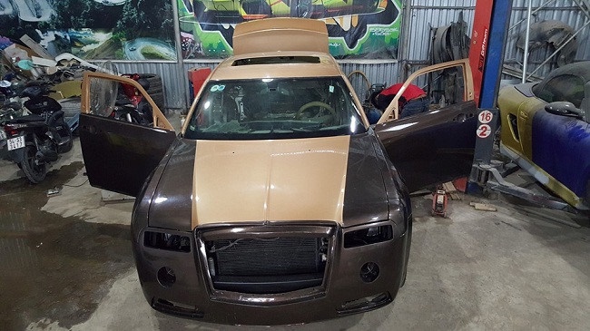 VBF-Ước mơ có trong tay 1 chiếc xe sang trọng như Rolls-Royce là mong ước của bất cứ người Vn nào. Nhưng vì giá quá cao nên họ đành chấp nhận số phận và chỉ biết thưởng thức tuyệt phẩm qua những chiếc nhái do chính họ tự tạo ra.Công nhận thợ Việt giỏi thật. Từ chiếc Chrysler mà làm được thế này là quá tốt và rất kỳ công. Trước nay ở Việt Nam cũng có một số con độ Rolls-Royce mà hiếm có con nào đạt đến cảnh giới này lắm