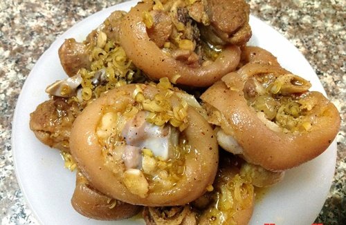 Theo cách nấu của người miền trung, giò heo thấm gia vị rất đậm đà. Ảnh:youtube.com