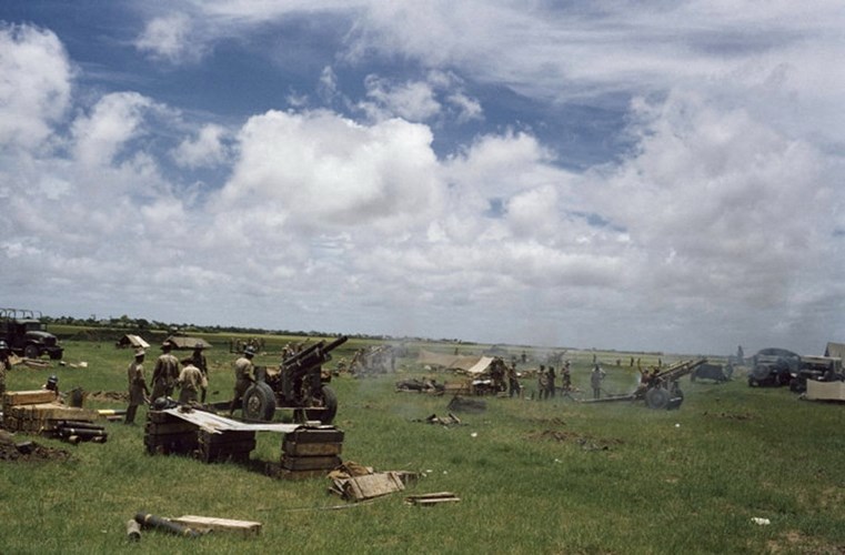 Trận địa pháo của quân Pháp ở phía Tây Nam Định, Việt Nam năm 1954.