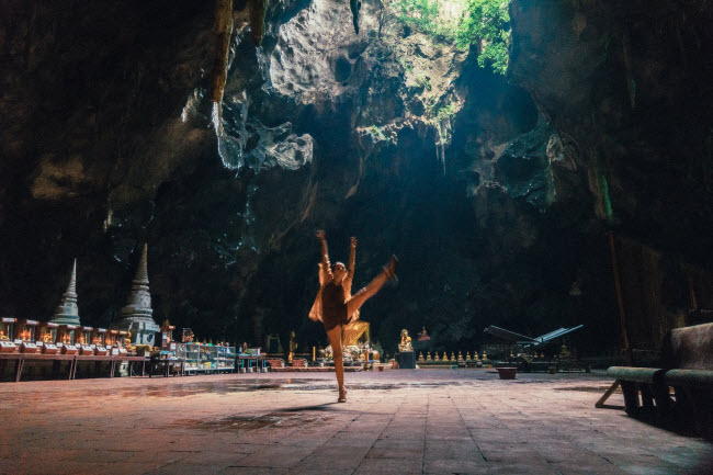 Vũ công biểu diễn trong hệ thống hang động Khao Luang ở Thái Lan. Nơi đây có rất nhiều các bức tượng Phật.