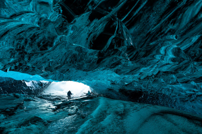 Iceland có nhiều hang động băng như thế này. Chúng thường có màu xanh do ánh sáng bị khúc xạ.