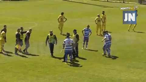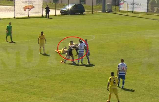 Trong bóng đá các cầu thủ xảy ra xô xát là điều khó tránh. Nhưng cầu thủ hành hung trọng tài thì đúng là hiếm gặp. Một trọng tài đã bị gãy mũi sau màn lên gối của một cầu thủ người Bồ Đào Nha.