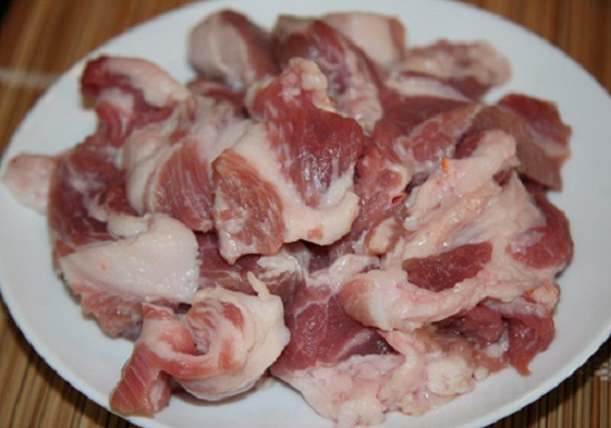 – Thịt ba chỉ rửa sạch để ráo nước, thái miếng vuông vừa ăn. Hành lá thái khúc, gừng thái lát, tỏi bóc vỏ để nguyên tép.