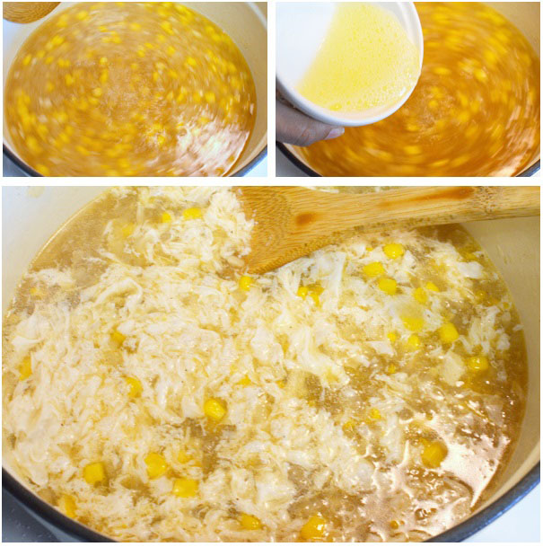 - Đổ ngô ngọt vào nồi, thêm đường, muối, tiêu, nước tương, giấm và dầu mè.