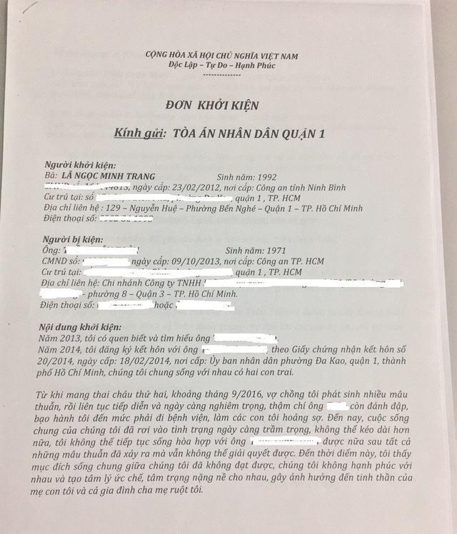 Minh Trang gửi đơn kiện chồng cũ đến tòa án nhân dân quận 1.