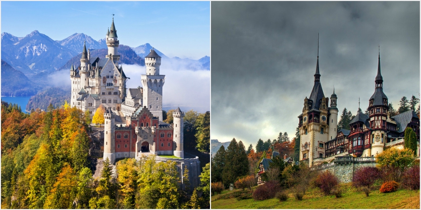 Lâu đài Peles (trái) và Schloss Neuschwanstein (phải), nguồn cảm hứng thiết kế lâu đài Tam Đảo (Ảnh: luxurydesign.vn)