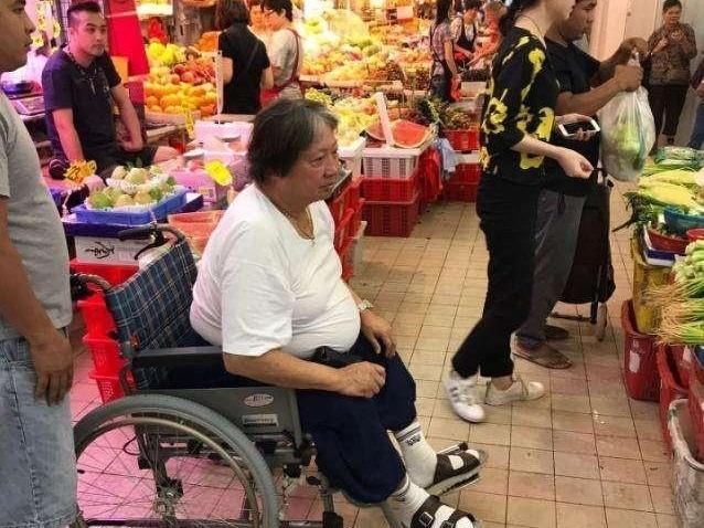 Mới đây các tay paparazzi của Hong Kong bắt gặp ngôi sao võ thuật 65 tuổi ngồi xe lăn tại quầy bán rau củ ở chợ gần khu căn hộ của gia đình ông.