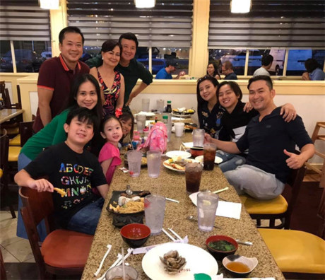 Hoài Lâm chụp ảnh cùng các thành viên trong đại gia đình Bảo Ngọc tại Mỹ.