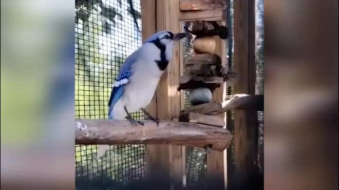 Emma Neagu- du khách đến thăm Trung tâm Phục hồi Chim hoang dă Florida Keys - đă quay lại video này và đăng lên mạng. Cảnh quay cho thấy con chim giẻ cùi lam – loài chim thuộc họ quạ - tên Flop kêu meo như một con mèo thực thụ.