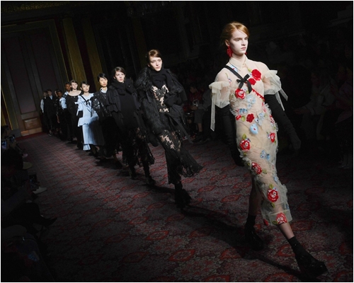 Các fan của Rocha là một lực lượng đông đảo - phụ nữ ở các độ tuổi và size khác nhau nhưng có chung niềm đam mê với những thiết kế đậm chất nữ tính mà ông lớn mang tới. Mùa thời trang này, Simone Rocha trình làng những thiết kế với tông vàng nhạt chủ đạo. Với các dải ruy băng chay dọc tay áo, ren và lông dê, áo khoác Victorian đen... Rocha thực sự đã tạo nên những khoảnh khắc khiến người xem ngỡ ngàng vì quá đẹp.