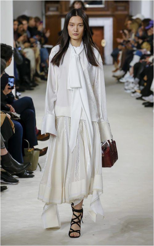 Những trang phục cất lên tiếng nói thay cho Jonathan Anderson. Từ thiết kế đầu tiên với áo con lụa mặc ngoài váy họa tiết kẻ cho tới những thiết kế trắng tinh khôi hay những gam màu trầm ấm áp, các mẫu trang phục được may đo tinh tế với túi to bự, áo khoác kiểu suit chất liệu tweed... tất cả đều tạo ra hiệu ứng gần gụi và đúng chất thời trang ứng dụng, thân thiện với cuộc sống thường ngày.