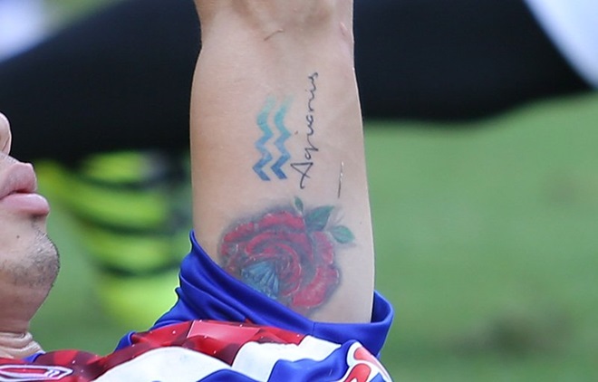 Thật ra còn có một viên kim cương ở giữa hình xăm hoa hồng, và bên dưới là hình xăm cung hoàng đạo Bảo Bình.