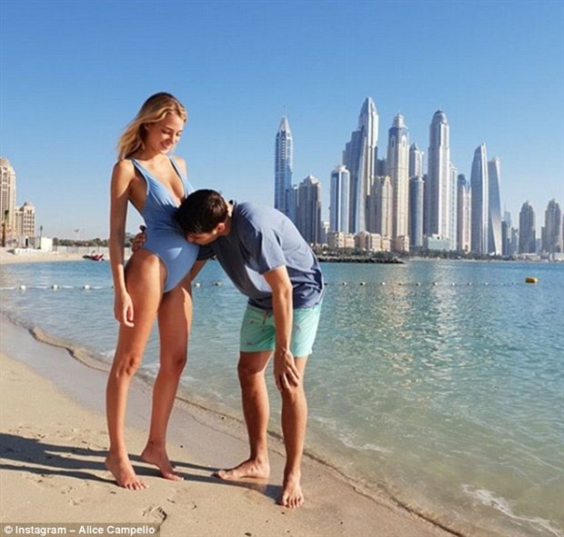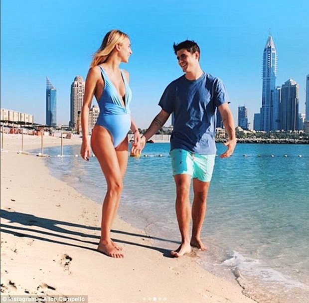Cầu thủ nổi tiếng Tây Ban Nha Morata vừa cùng cô vợ xinh đẹp Alice Campello đang có mặt tại Dubai. Hai người đang tận hưởng kỳ nghỉ ngắn ngày của mình. Họ sung sướng vì chỉ cần một lần mang thai được cả hai em bé.