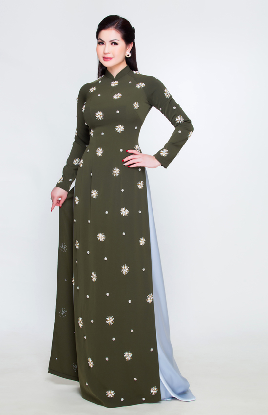 Gần đây Yến Vi trở về nước và được mời làm người mẫu trong bộ ảnh thời trang áo dài truyền thống, ngoài các mẫu cơ bản c̣n có mẫu áo dài đính kết cầu kỳ.