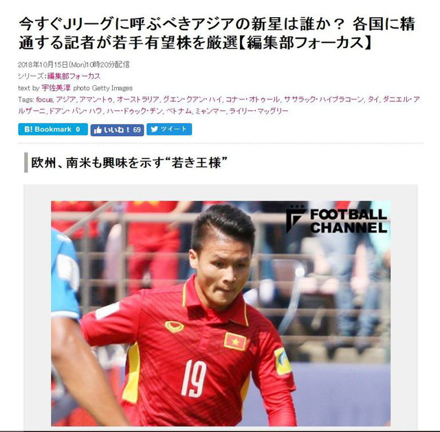 Trong bài viết vài hôm qua, tờ Footballchannel của Nhật Bản đã chỉ ra 8 tài năng trẻ ở châu Á mà các CLB ở J.League (giải vô địch quốc gia Nhật Bản) cần chiêu mộ trong kỳ chuyển nhượng tới. Trong bản danh sách này có tới 3 cái tên của Việt Nam là Quang Hải, Đức Chinh và Văn Hậu.