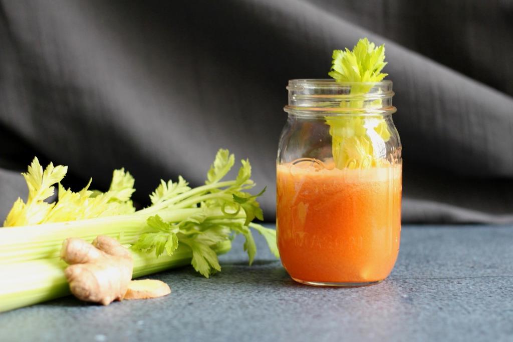 Cần tây + cà rốt + táo + chanh + gừng + dầu olive