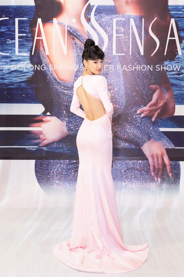 Với thiết kế tua rua, cầu kỳ và yểu điệu, Khánh Linh The Face đã gây mê được người đối diện bởi những ánh mắt trầm trồ, không ngớt lời khen. Thiết kế tua rua xuyên thấu gần đây rất được lòng các mỹ nhân Việt. Loại trang phục này không chỉ mang lại sự uyển chuyển, nữ tính trong từng bước đi mà còn tôn lên nét gợi cảm "chết người" của đường cong hình thể.