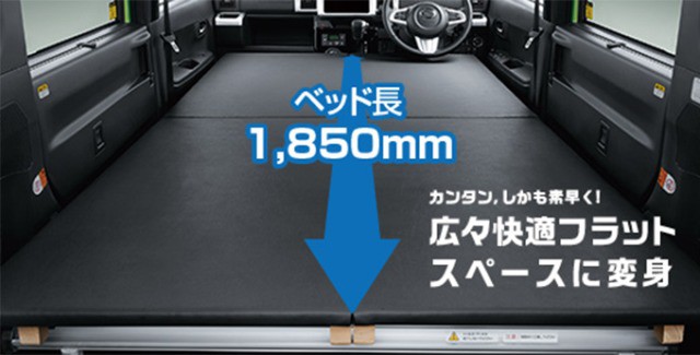 Nhưng nhờ thêm một vài chi tiết nhỏ, chiếc Wake đã biến thành nơi để bạn ngủ qua đêm. Giống như hầu hết các mẫu Kei-car, khung hình hộp của Wake cho phép tạo ra không gian cực rộng trong xe. Khi gập phẳng toàn bộ ghế, trải tấm nệm được thiết kế đặc biệt mà Niconico Rentacar cung cấp, bạn sẽ có một chiếc giường siêu to khổng lồ dài 185cm.