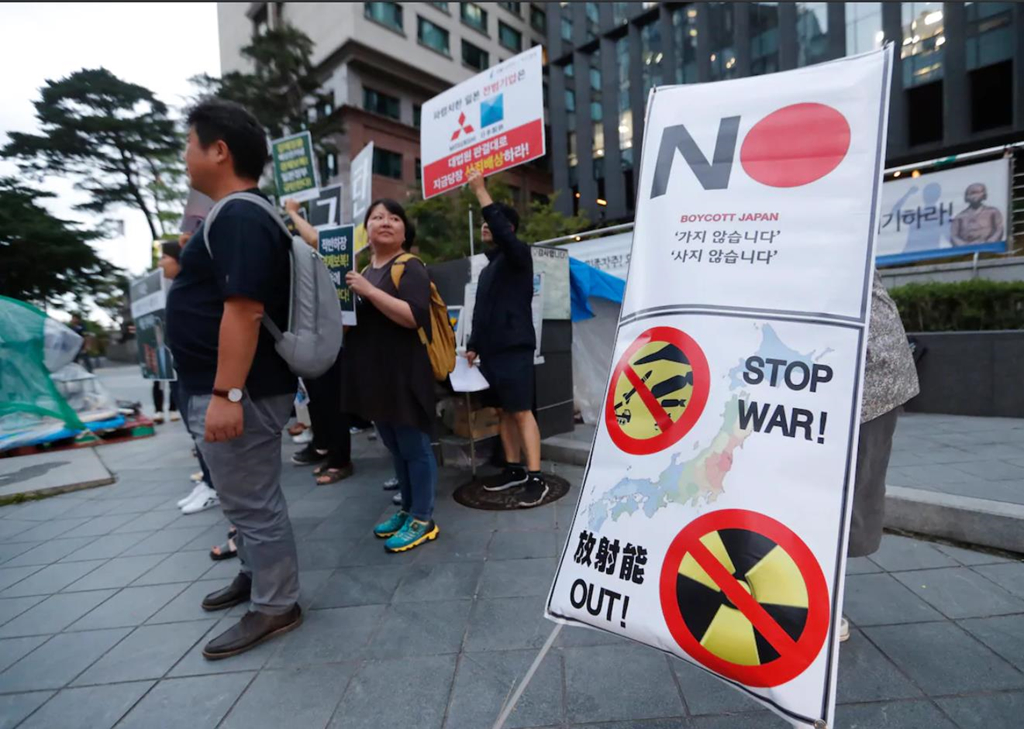 Nhiều đại diện doanh nghiệp bán lẻ Hàn Quốc đã đổ ra đường phố Seoul tuần hành để phản đối Nhật Bản. Họ giẫm đạp lên sản phẩm Nhật Bản một cách tức giận. Một YouTuber nổi tiếng của Hàn Quốc chia sẻ video quay cảnh anh này xé tấm vé máy bay tới Nhật.