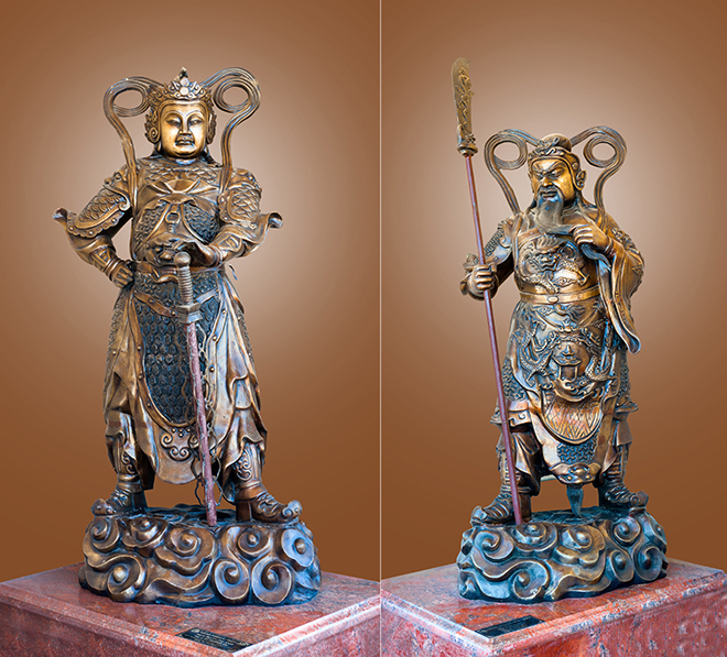 Các pho tượng Thích Ca Mâu Ni, Dược Sư, Quán Thế Âm, Địa Tạng và Hộ Pháp được đúc bằng đồng tại Huế năm 2008.