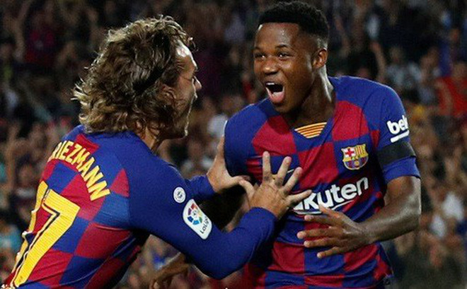 Tương lai Ansu Fati (phải) không hề kém bản hợp đồng 120 triệu euro Griezmann. Ảnh: REUTERS