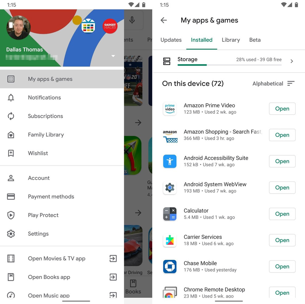 Ngay khi quảng cáo pop-up tiếp theo xuất hiện, bạn hãy quay ra màn hình chính, và mở ứng dụng Google Play (CH Play) trước khi mở bất kỳ ứng dụng nào khác. Truy cập vào trình đơn hình ba thanh ngang, di chuyển đến thẻ My Apps & Games (Ứng dụng và trò chơi của tôi), sau đó chọn thẻ Installed (Đã cài đặt).