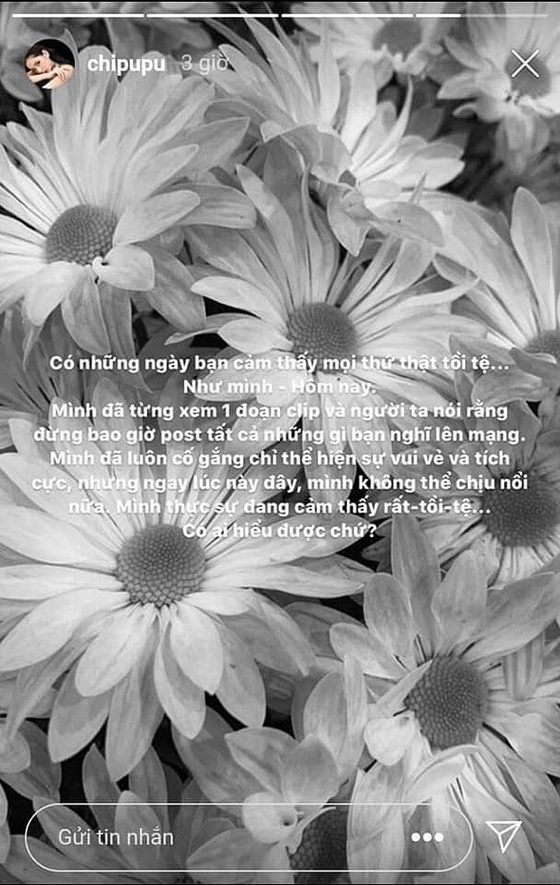 Trước quá nhiều ý kiến từ công chúng, Chi Pu đã có những phản hồi chính thức trên trang cá nhân mới đây. Theo Chi Pu thời gian qua cô đã trải qua những ngày rất tồi tệ và tìm cách giải toả bằng việc đăng chia sẻ lên mạng xã hội. Vậy nhưng giọng ca “Đoá hoa hồng” không nghĩ lại nhận về nhiều đồn đoán trái chiều như hiện tại. “Chi biết rằng có rất nhiều người đang cảm thấy hả hê vì mãi mới thấy Chi buồn. Và đây cũng là cơ hội để các bạn có thể xuyên tạc hàng ngàn lí do cho nỗi buồn đó. Nhưng các bạn biết không, tất cả những gì các bạn đang cố gắng xâu chuỗi và lan truyền lại hoàn toàn không liên quan. Trời ơi mình đọc mà mình tức á, tức văng luôn nỗi buồn”, Chi Pu viết.