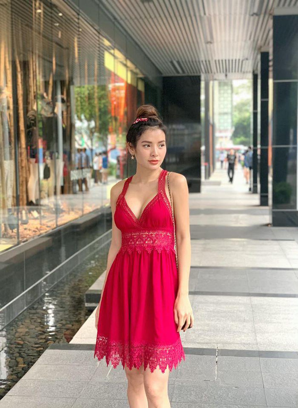 Váy hai dây nóng bỏng của Phương Trinh Jolie làm tôn làn da trắng nõn.