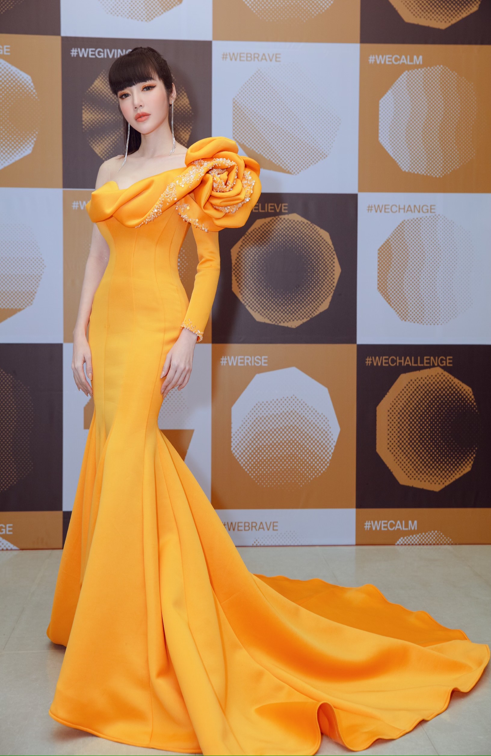 Hiếm khi xuất hiện tại các sự kiện nhưng khi đã tham dự, Elly Trần luôn có sự đầu tư hình ảnh chỉn chu. Đến với WeChoice Awards 2019, Elly Trần chọn chiếc đầm màu vàng của NTK Lâm Lâm. Bộ trang phục có phần điểm nhấn ở phần ngực và tay như đóa vàng rực rỡ. Thiết kế đuôi cá cũng giúp "bà mẹ hai con" khoe trọn thân hình đồng hồ cát với vòng eo 55cm và những đường nét gợi cảm trên cơ thể.