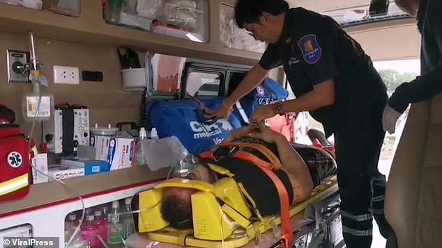 Tài xế Thanakorn To-iam, 53 tuổi, bị thương ở chân phải và mũi, được đưa đến bệnh viện.
