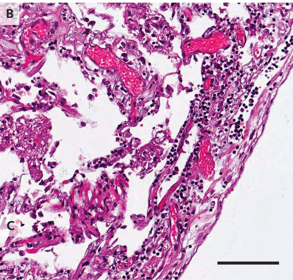 Kết quả quan sát cho thấy tất cả lá phổi của các bệnh nhân COVID-19 và cúm H1N1 đều có dấu hiệu bị tổn thương lan tỏa ở phế nang, nhất là hiện tượng hoại tử của các tế bào nhỏ quanh phế nang và các sợi fibrin trong khoang phế nang.